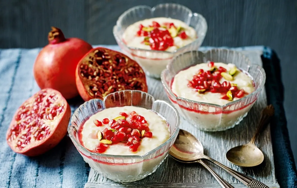 پودینگ انار دسری لطیف و خامهای است که با ترکیب شیر، نشاسته ذرت، شکر و دانههای انار تهیه میشود. این دسر خوشطعم با رنگ قرمز جذاب خود، جلوهای زیبا به سفره شب یلدا میبخشد. روی این پودینگ معمولاً با دانههای انار و خلال پسته تزیین میشود که ظاهری شیک و مجلسی به آن میدهد.
